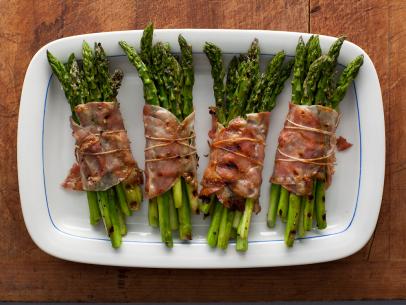 Recipe courtesy of http://www.foodnetwork.com/recipes/rachael-ray/bacon-wrapped-asparagus-bundles-recipe.html
